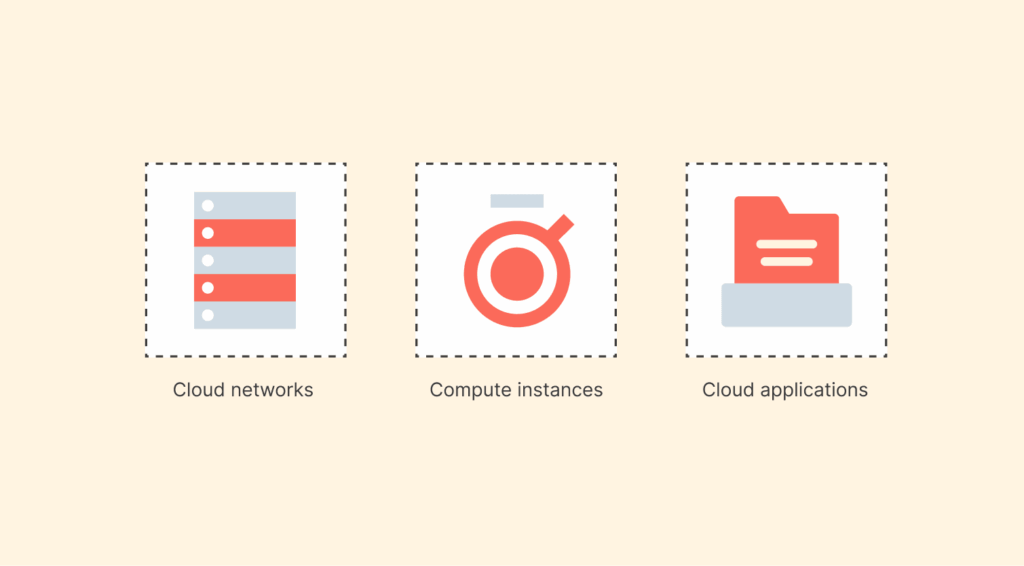 - Compute-Instanzen (Virtuelle Maschinen): Compute-Instanzen sind die Assets, die die Arbeit in der Cloud ausführen. Diese Vermögenswerte müssen gesichert werdengegen böse Malwareund Schwachstellen. Da Cloud-Instanzen jederzeit hoch- und heruntergefahren werden können, muss Ihr IT-Team sie immer sehen und im Rahmen einer strengen Richtlinie sichern.