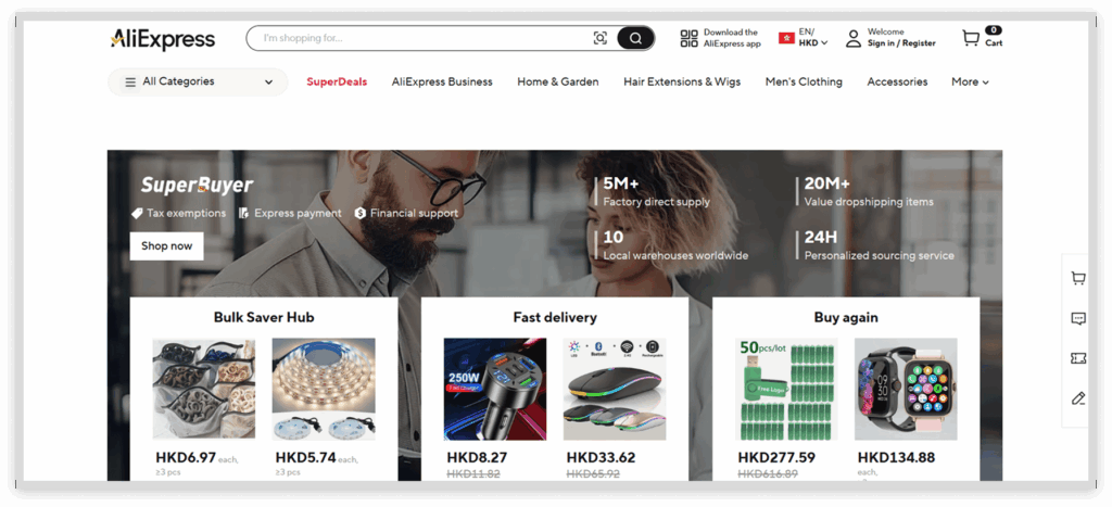 Es bietet eineumfangreiche Produktliste, einschließlich Haushaltswaren, Mode, Elektronik, Möbel und mehr. Darüber hinaus können Sie sich als Verkäufer registrieren und Produkte verkaufen. AliExpressfunktioniert genau wie andere E-Commerce-Plattformen, sodass Benutzer Produkte suchen, Bewertungen lesen und Produkte direkt von Verkäufern kaufen können.