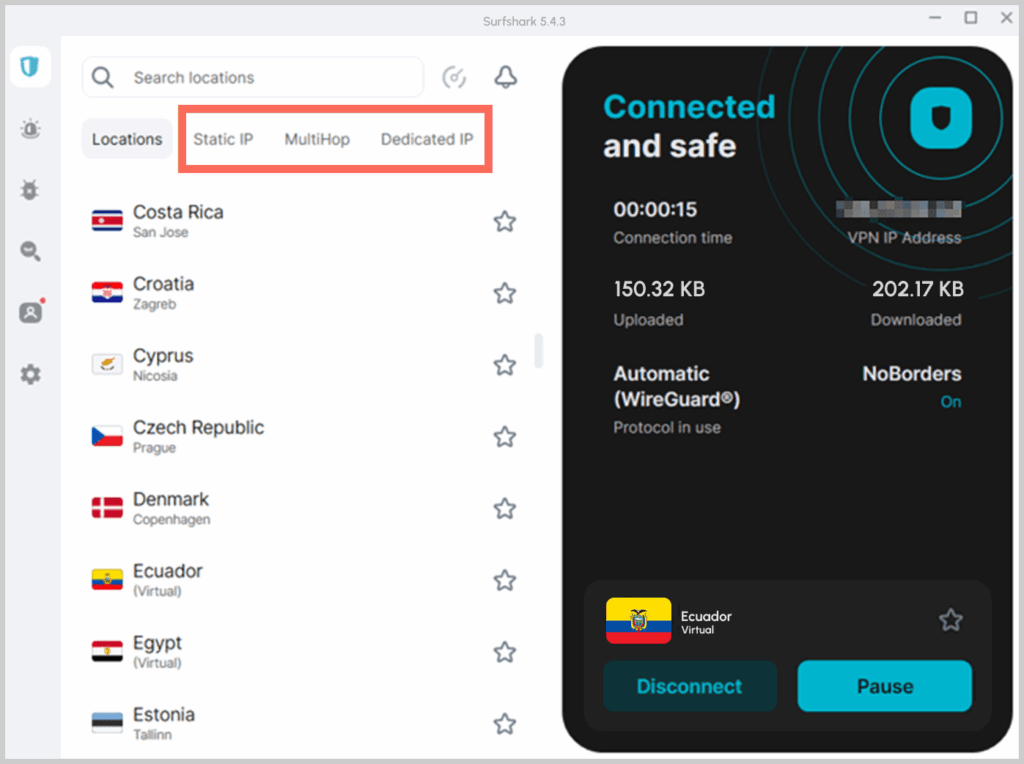 - Zusätzliche Funktionen zur Verbesserung der Privatsphäre (Multi-Hop-Verbindungen (Doppel-VPN) und Zugriff auf Tor)