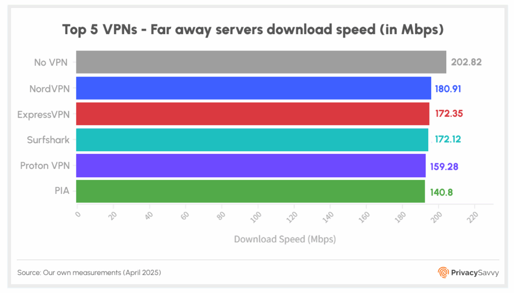 Bei unseren VPN-Geschwindigkeitstestergebnissen handelt es sich um globale Durchschnittswerte, sofern wir nichts anderes angeben. Wir testen jedes VPN mehrmals am Tag im Abstand von mindestens vier Stunden und nutzen drei Standorte, normalerweise einen in Nordamerika, einen in Europa und einen in Asien. Dann berechnen wir den Durchschnitt im Bericht.