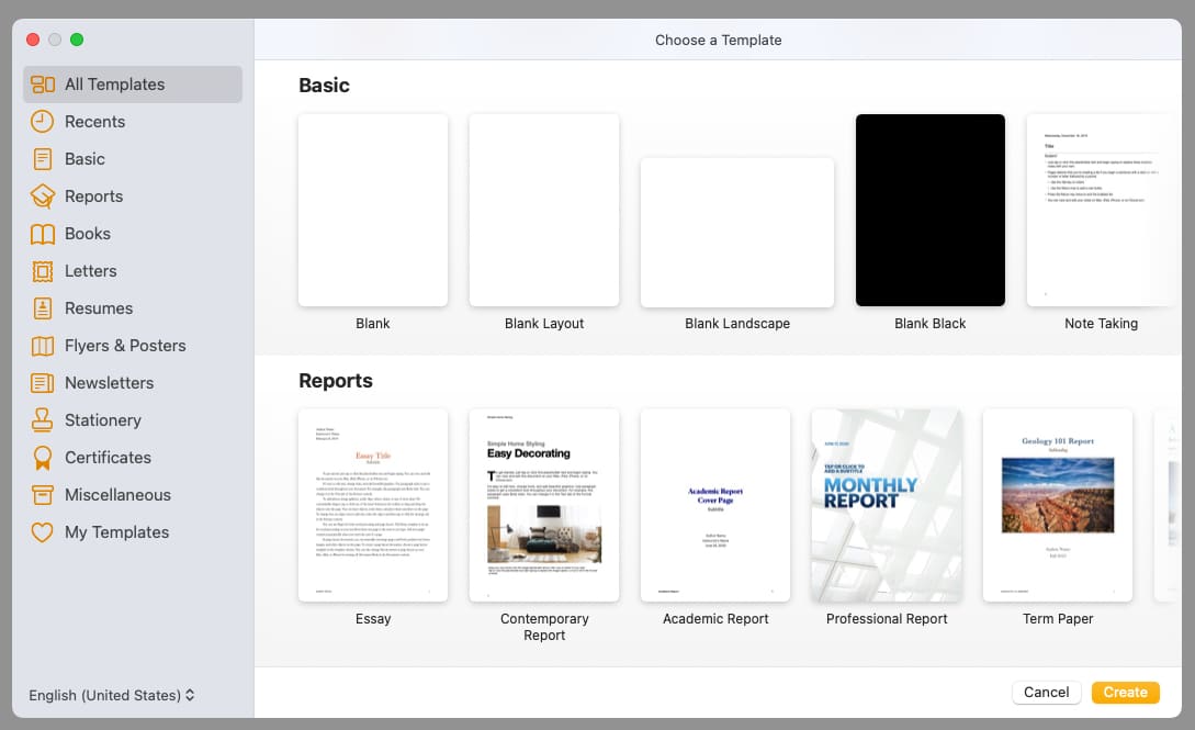 Ähnlich wie in Microsoft Word können Sie in Pages Dokumente wie Artikel, Berichte und Lebensläufe sowie Broschüren, Newsletter und Flyer erstellen.