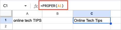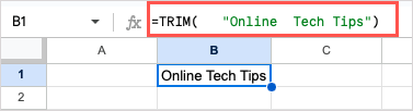Als Nächstes entfernen wir mit dieser Formel zusätzliche Leerzeichen aus dem spezifischen Text „Online-Tech-Tipps“: