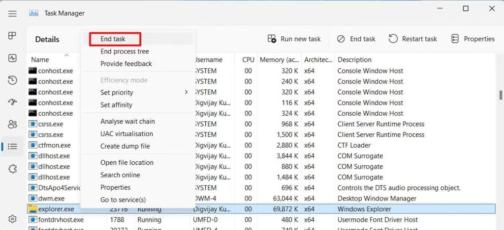 3. Verwenden Sie den Task-Manager, um Explorer.exe neu zu starten