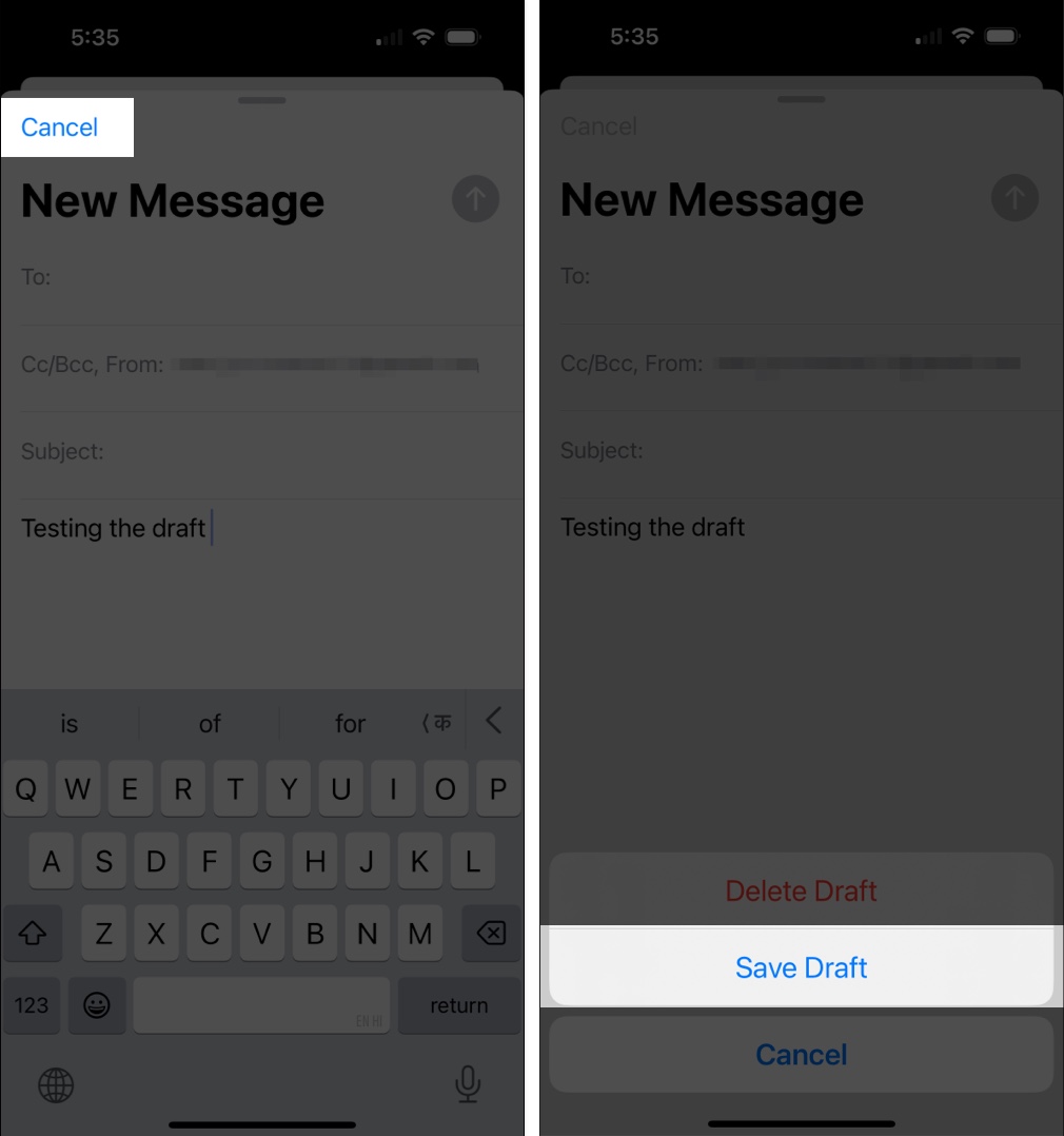 Wenn Sie Ihre E-Mail verfasst haben, sie aber später fertigstellen möchten, können Sie einfach auf tippenStornieren→Entwurf speichernwenn Sie bereit sind; Gehen Sie einfach zum Ordner „Entwürfe“ und machen Sie dort weiter, wo Sie aufgehört haben.