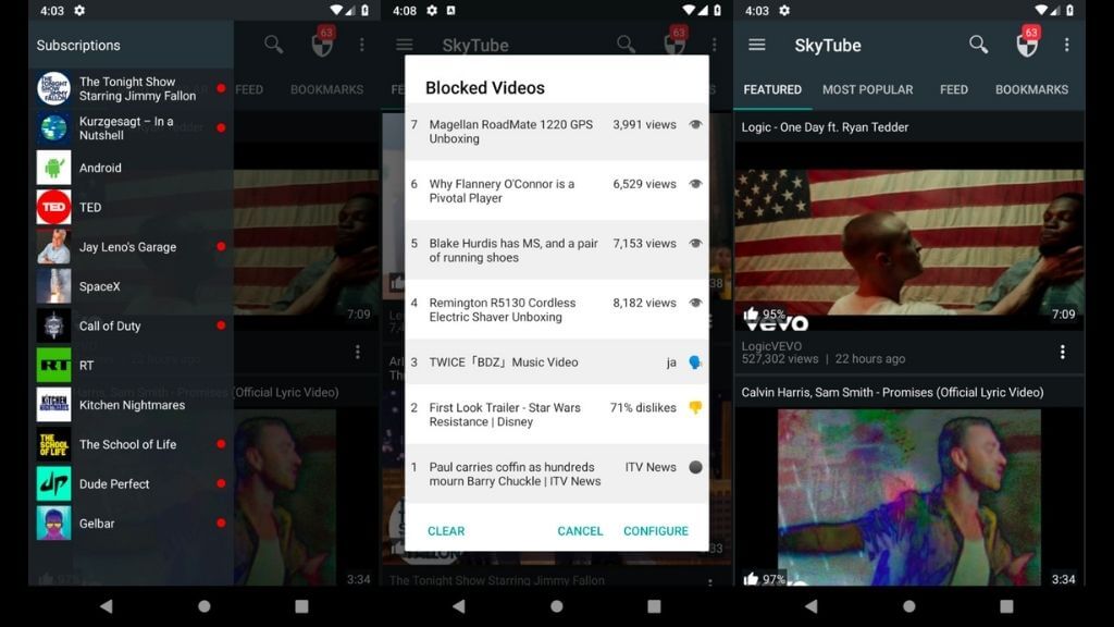 Wie NewPipe ist SkyTube nicht auf Google-APIs oder -Codes angewiesen, sodass Sie es ohne Google-Konto verwenden können, und natürlich gibt es überhaupt keine Werbung.