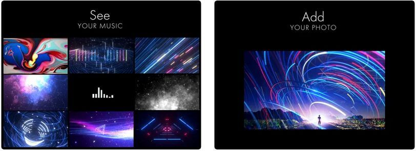 Diese App hört Musik entweder über Ihr Mikrofon, iTunes oder Ihre Dateien. Die Bilder in dieser App sind atemberaubend, klar und deutlich und reagieren sehr gut auf die Musik, die Sie gerade spielen. Es gibt eine große Auswahl, allerdings müssen Sie für die meisten Bildpakete 3,99 US-Dollar bezahlen. Allerdings bietet die App eine kostenlose Grafik.