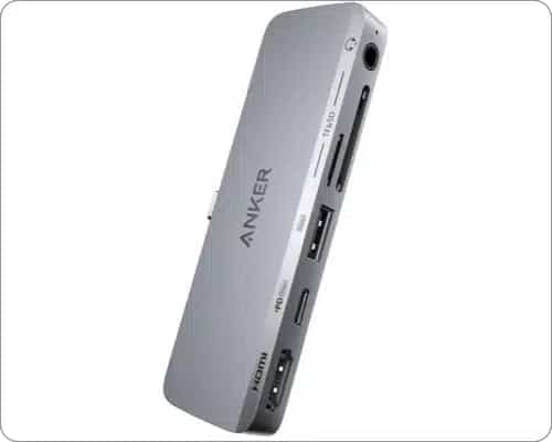 Neben dem HDMI-Anschluss verfügt der Anker USB-C über viele weitere Anschlüsse wie USB-A, USB-C, Kopfhöreranschluss und SD-Kartensteckplatz, über die Sie eine ganze Reihe neuer Zubehörteile mit Ihrem iPad Pro verbinden können.