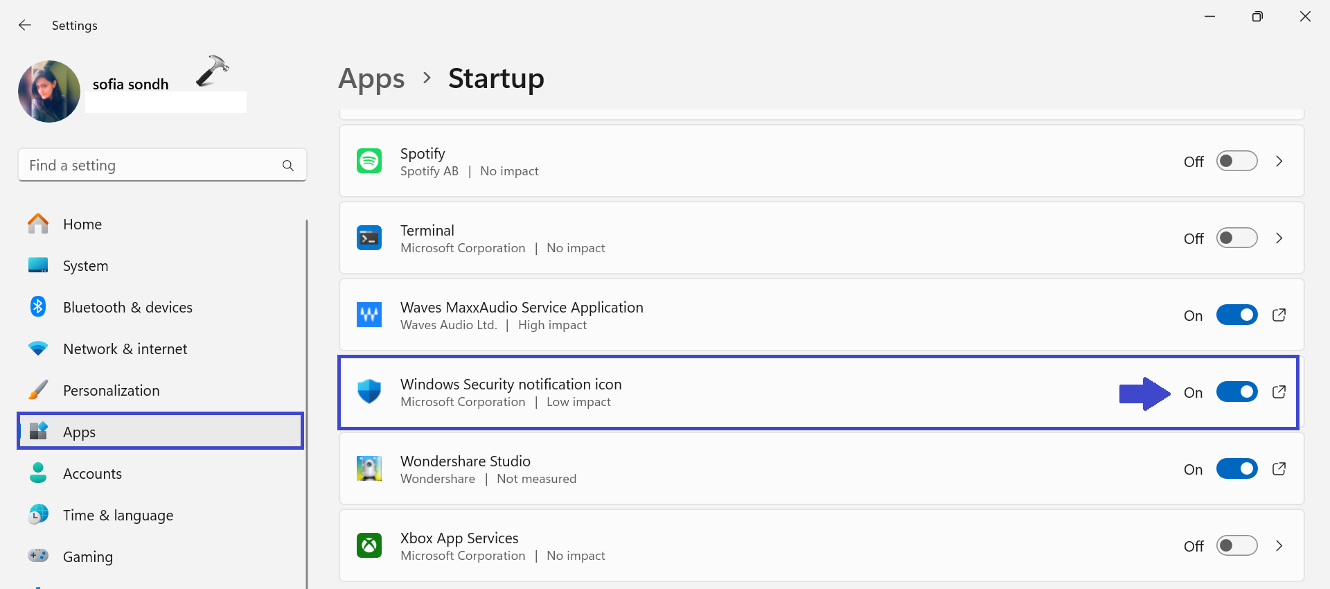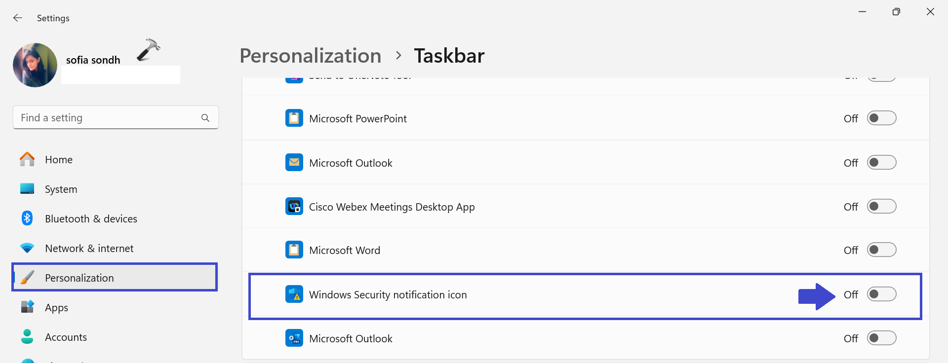 Hinzufügen/Entfernen des Windows-Sicherheitssymbols in Windows 11
