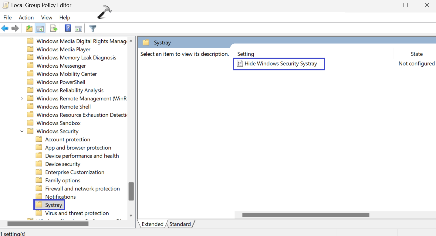 Computer Configuration > Administrative Templates > Windows Security > Systray
