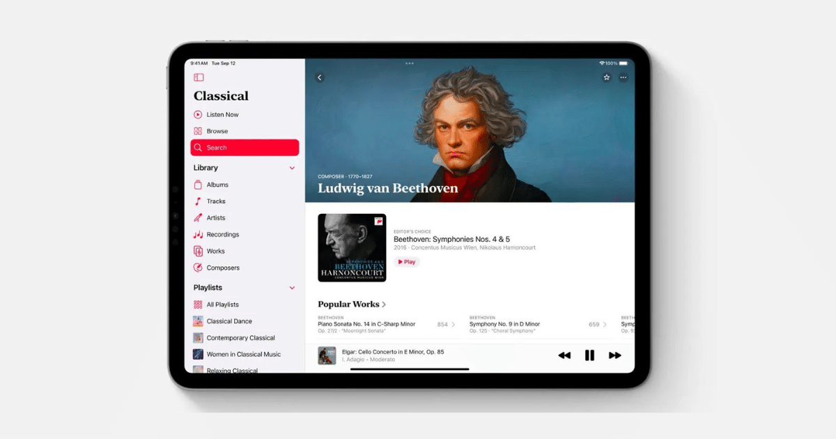 Apple hat heute Apple Music Classical für das iPad veröffentlicht. Dieser Schritt folgt auf die erste Einführung auf dem iPhone und Android und erweitert den Zugang zu klassischer Musik für ein breiteres Publikum. Das Update, Version 1.1, führt eine iPad-spezifische Benutzeroberfläche ein, die das Benutzererlebnis auf dem größeren Bildschirm optimieren soll.