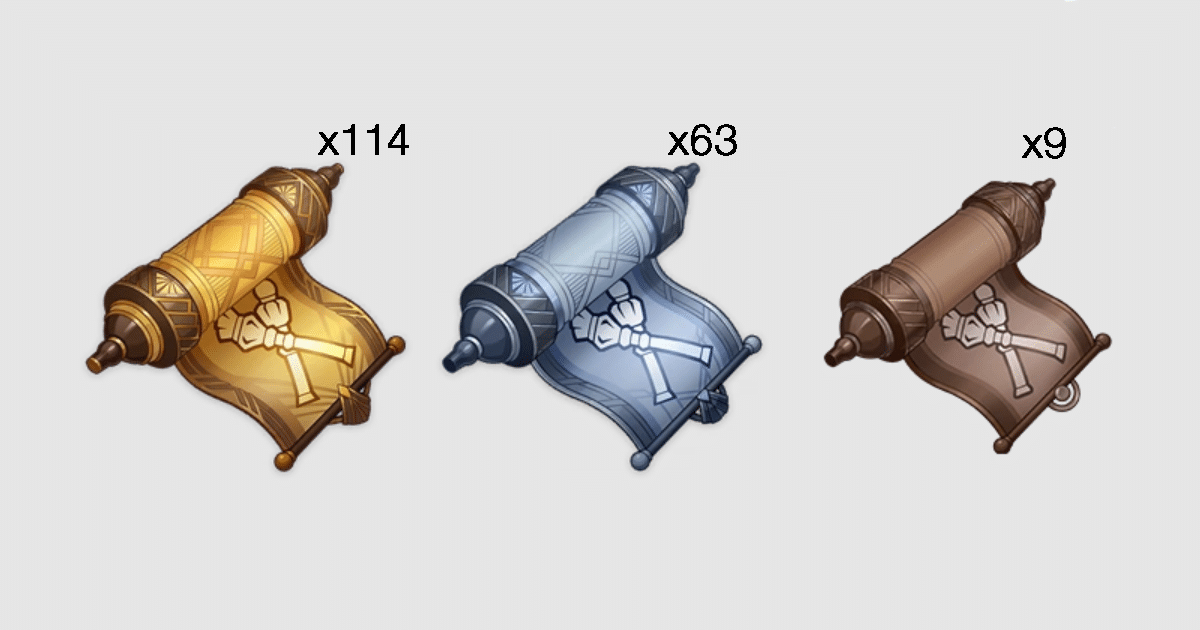 - Krone der Einsicht: Drei Kronen sind erforderlich, um die Talente eines Charakters voll auszuschöpfen. Diese sind sehr selten und stammen von Events oder Bossen.