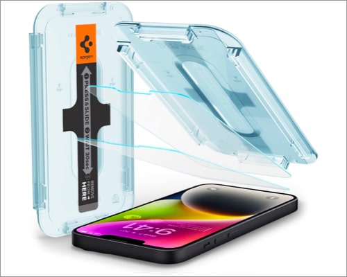Nach den Hüllen besteht der nächste Schritt zum Schutz Ihres iPhone 14, Plus, Pro oder Pro Max in der Auswahl des richtigen Displayschutzes. Und ich denke, dass das gehärtete Glas von Spigen genau das Richtige ist.