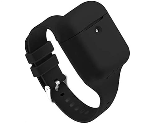 Unabhängig davon, wie beschäftigt Ihr Tag ist, sichert das BabyValley-Armband Ihre AirPods und macht sie unterwegs zugänglich. Es hat ein Armbanduhr-Design. Sie müssen also nur Ihr Handgelenk drehen, um Ihre Ohrhörer auszuwählen. Außerdem ist dies sowohl für AirPods als auch für AirPods Pro verfügbar.