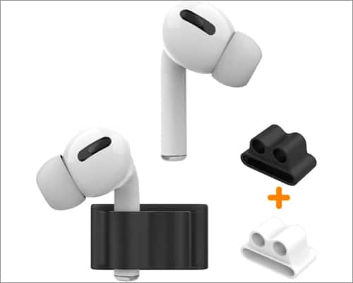 Die Ohrhörerlöcher halten Ihre AirPods fest, sodass sie nicht herunterfallen, und es ist auch mit den AirPods Pro kompatibel. Interessanterweise ist das Silikonmaterial rund um Ihre AirPods voluminös und verleiht Ihren Ohrhörern Schutz und Halt.