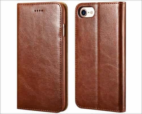 Hier ist eine hochwertige Folio-Hülle für das iPhone SE der zweiten Generation, die luxuriös aussieht. Es verfügte über drei Kartenfächer und ein Bargeldfach. Der sichere Magnetverschluss hält Ihre Wertsachen sicher und vor Blicken verborgen.