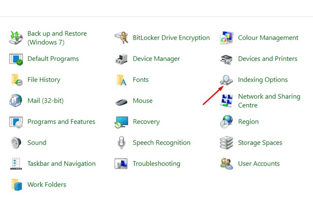 Schritt 3.Klicken Sie in der Systemsteuerung auf die Schaltfläche „Indizierungsoptionen“.