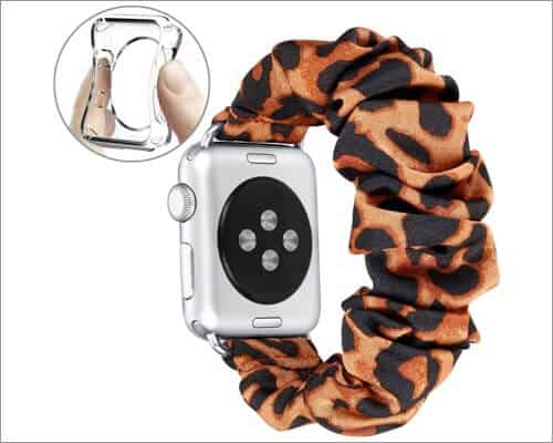 3. Fastgo Scrunchie-Band mit Leopardenmuster für die Apple Watch