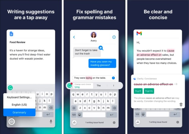 Grammarly ist eine Komplettlösung für Ihre Korrekturleseanforderungen. Obwohl die meisten Autoren die Grammarly-Weberweiterung verwenden, ist die Tastatur-App für das iPhone ziemlich nützlich. Es ermöglicht das Schreiben von Kommentaren in Echtzeit, um sicherzustellen, dass Ihre Inhalte eine einwandfreie Grammatik aufweisen. Sie können Ihr Schreiben auch verbessern, indem Sie den Dokumenteneditor und die Schreibstatistik verwenden.