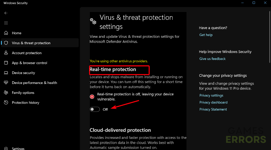 - Gehe zuEchtzeitschutzund aktivieren Sie das Kontrollkästchen, um es vorübergehend zu blockieren.