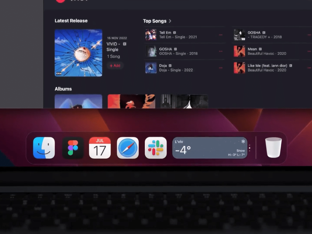 Ein anderes Konzept,erstelltvon Andrew Sereda, verfolgt einen etwas anderen Ansatz. Anstelle dynamischer Symbole schlägt dieses Konzept einen eigenen Bereich für Live-Aktivitäten im Dock vor. Ähnlich wie bei einem Stapel von Widgets in iOS könnten Benutzer direkt vom Dock aus durch mehrere Interaktionen scrollen.
