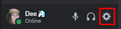 - Greifen Sie auf den Discord zuBenutzereinstellungenindem Sie das Zahnradsymbol in der unteren linken Ecke der Discord-App auswählen. Es befindet sich neben Ihrem Benutzernamen und Ihrem Profilbild.
