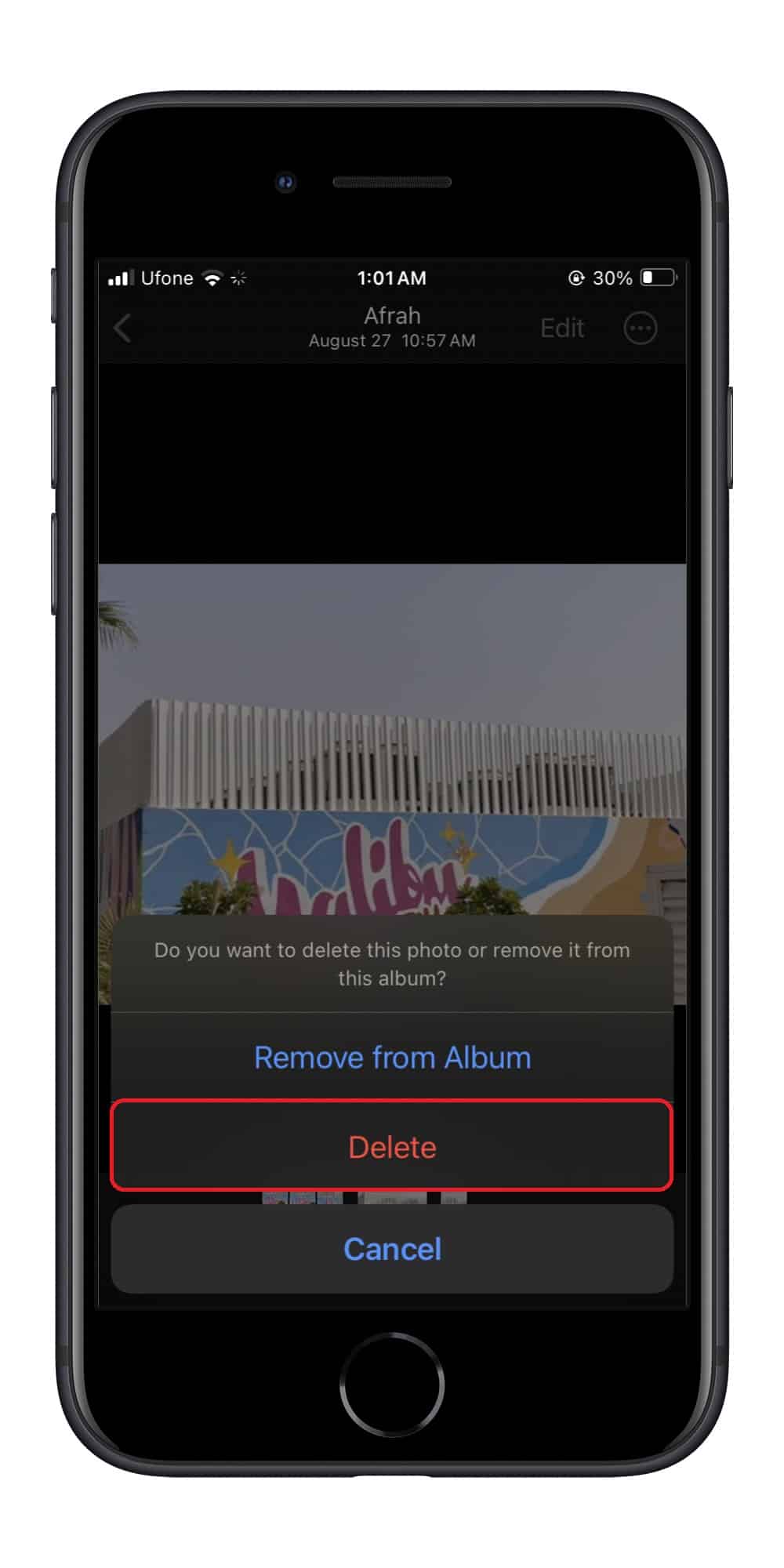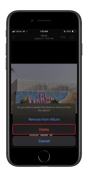 - Achten Sie beim Betrachten des Fotos auf das Papierkorbsymbol in der unteren rechten Ecke des Bildschirms.