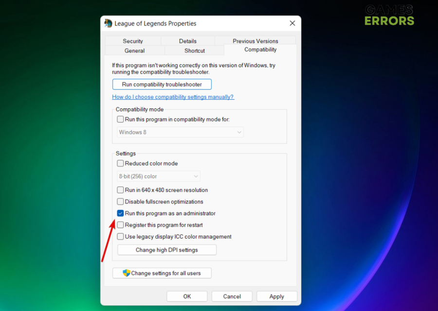 4. Markieren Sie dasFühren Sie dieses Programm als Administratoroption aus.