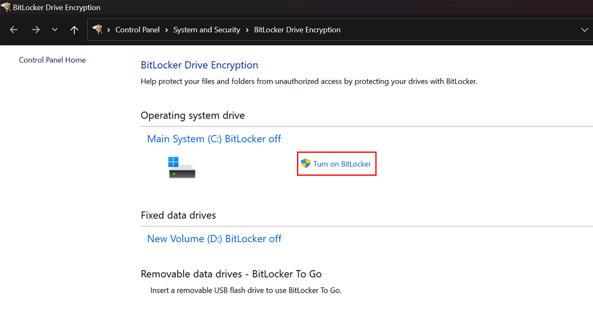 Sobald Sie bestätigt haben, dass Ihr Computer über einen TPM-Chip verfügt, können Sie BitLocker aktivieren, indem Sie die folgenden Schritte ausführen: