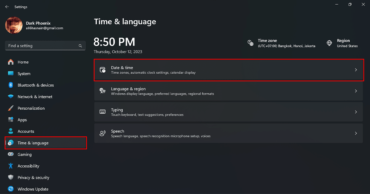 - Klicken Sie aufZeit & Spracheund klicken Sie aufDatum und Uhrzeit.