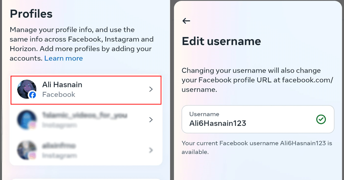 - Wählen Sie das Profil aus, dessen Benutzernamen Sie sehen möchten (wenn Sie mehrere Profile haben).
