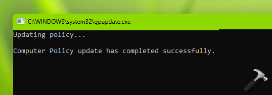 + RTasten und Typgpupdate /forceBefehl. Die Computerrichtlinie wird in wenigen Augenblicken aktualisiert.