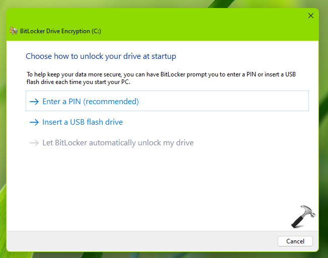 Auf diese Weise wird nun Ihre BitLocker-Laufwerks-PIN hinzugefügt. Es wird bei jedem Start gefragt, wenn Sie Ihr Windows 11-System starten.