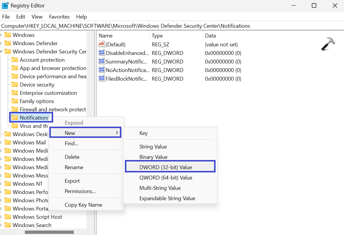 ComputerHKEY_LOCAL_MACHINESOFTWAREMicrosoftWindows Defender Security CenterNotifications