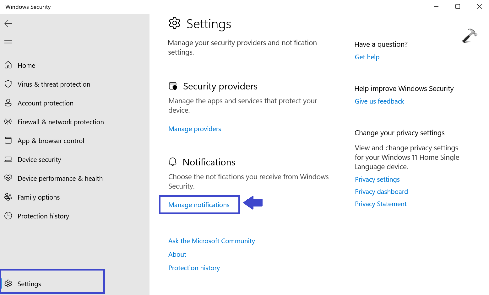 Option 3: Aktivieren oder deaktivieren Sie Windows-Benachrichtigungen zum Schutz vor Sicherheitsbedrohungen mithilfe der Windows-Sicherheit