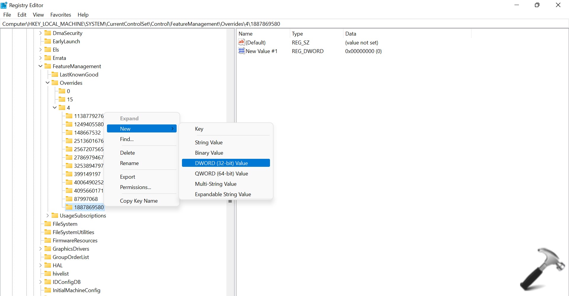 HKEY_LOCAL_MACHINESYSTEMCurrentControlSetControlFeatureManagementOverrides4