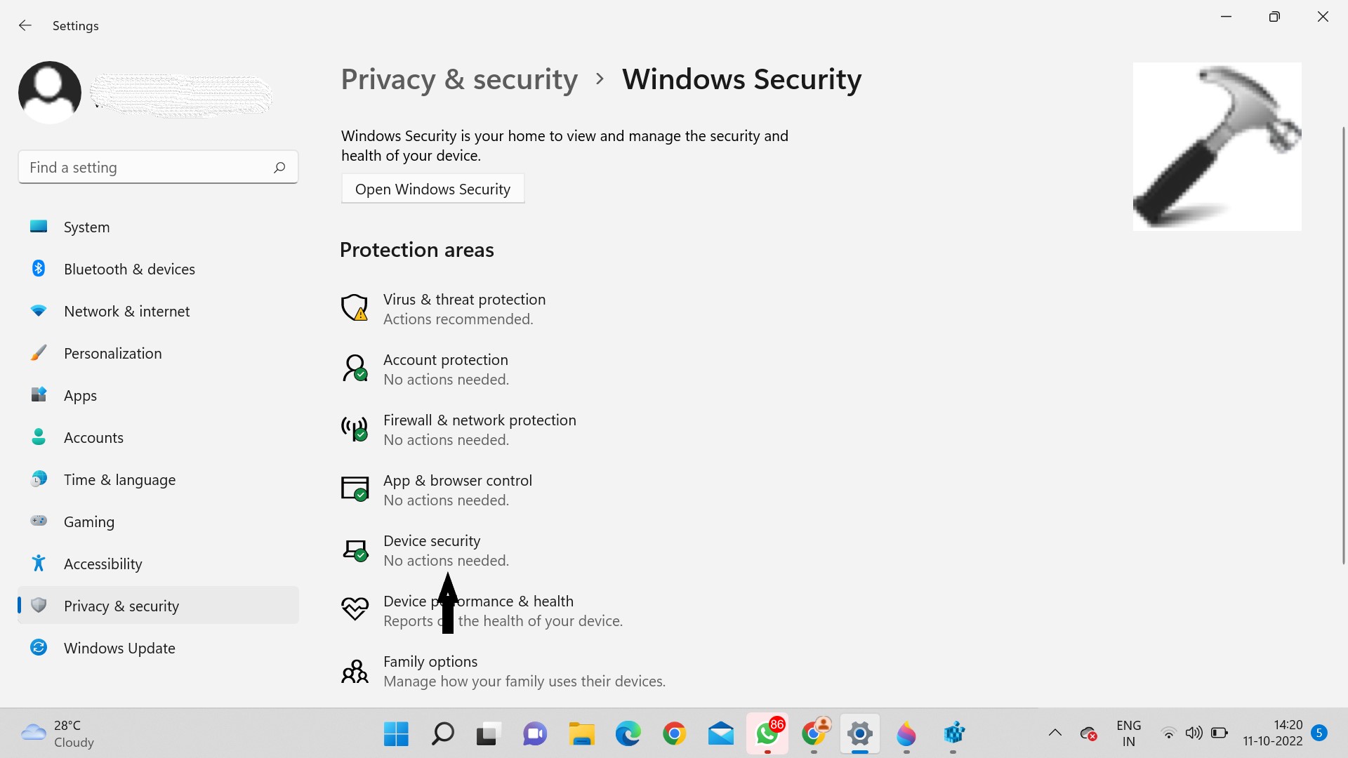3. Klicken Sie aufWindows-Sicherheitvon rechts.