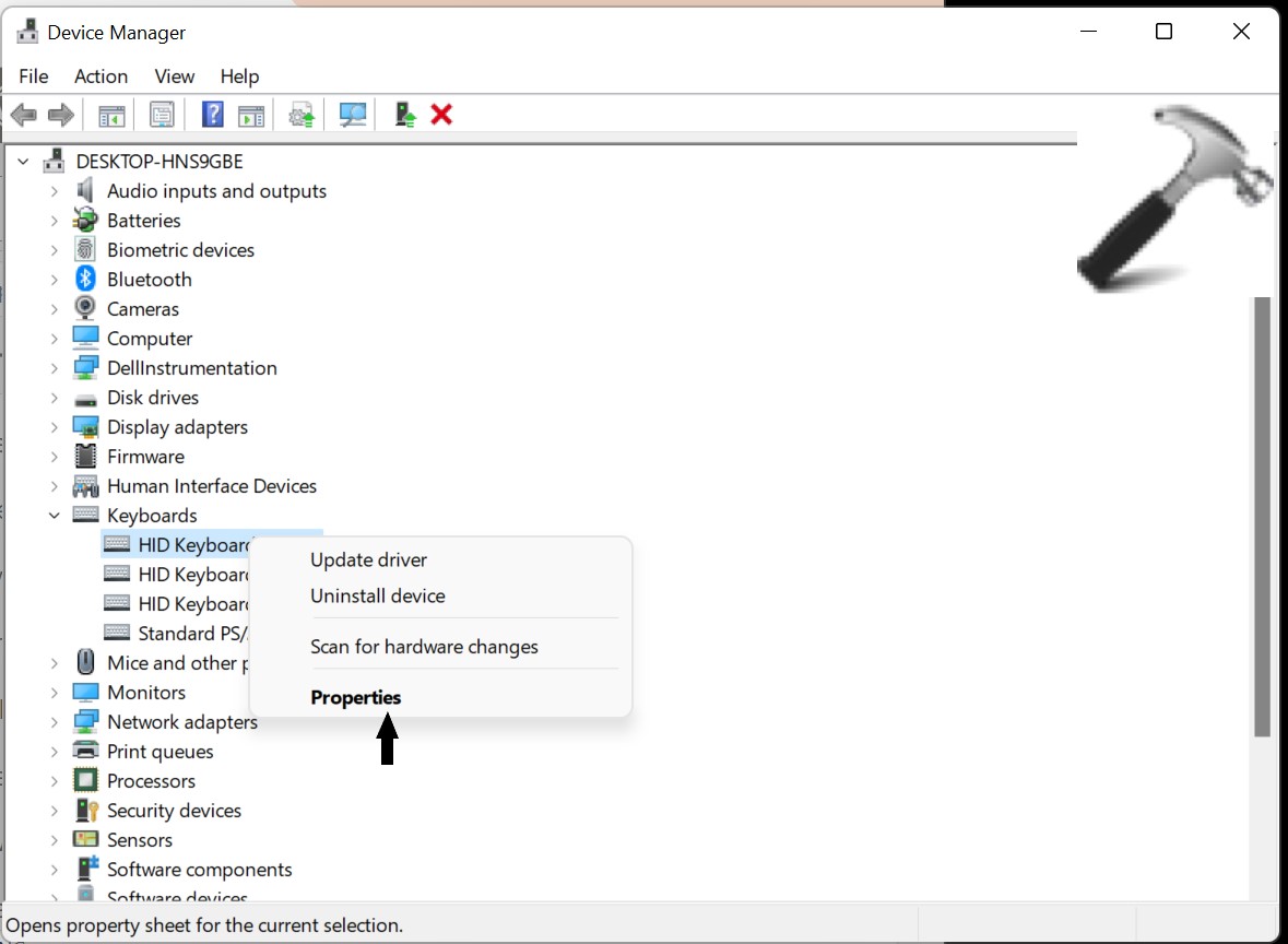 4. Klicken Sie mit der rechten Maustaste auf den Gerätetreiber und wählen Sie ihn ausEigenschaften.