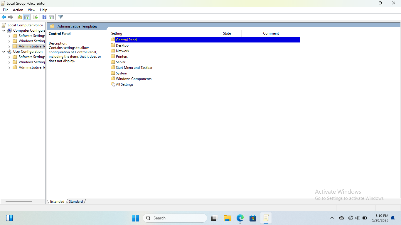 Schritt 2-Gehen Sie als Nächstes zur Computerkonfiguration und dann zur Systemsteuerung in der administrativen Vorlage.