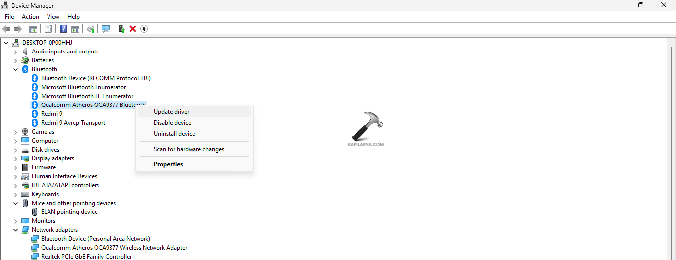 Schritt 3-Klicken Sie anschließend mit der rechten Maustaste auf den Bluetooth-Adapter und wählen Sie Treiber aktualisieren.