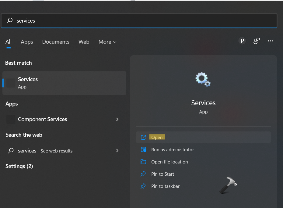 1.Öffnen Sie dieDienstleistungenApp durchWindows-Suche. TypDienstleistungenund klicken Sie dann aufOffen.