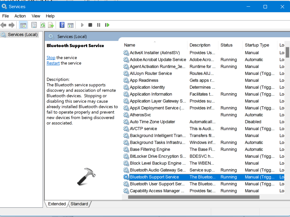 Fix 2: Durch Neustart des Bluetooth-Supportdienstes