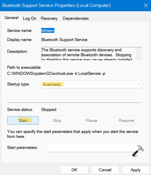 4.Klicken Sie anschließend aufStartund dann wählen SieAutomatischals Starttyp.