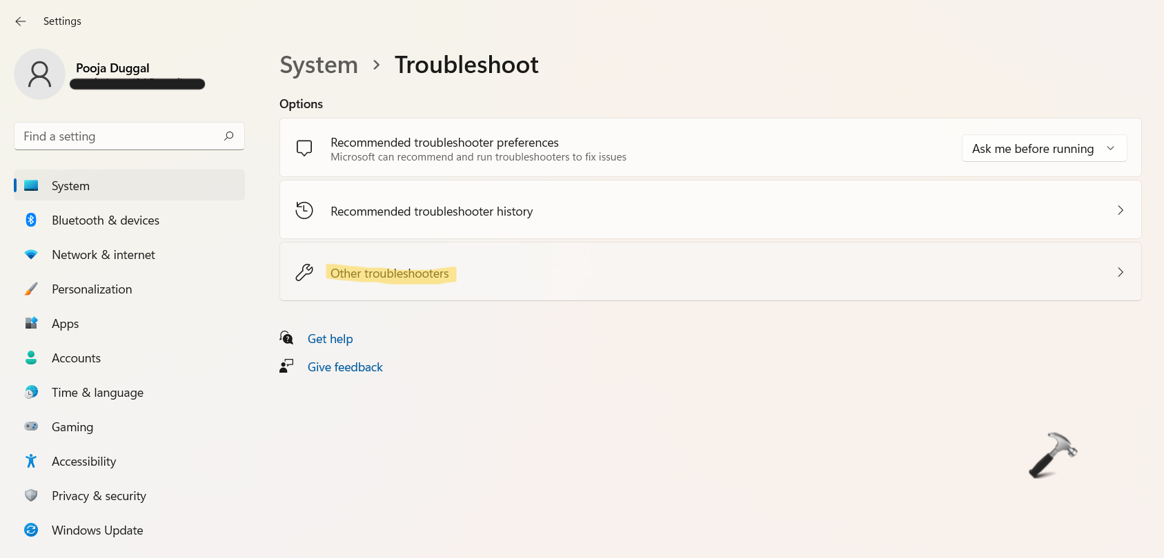 1.Öffnen Sie dieEinstellungenApp und gehen Sie zuSystemWählen Sie nun ausFehlerbehebungauf der rechten Seite vorhanden.