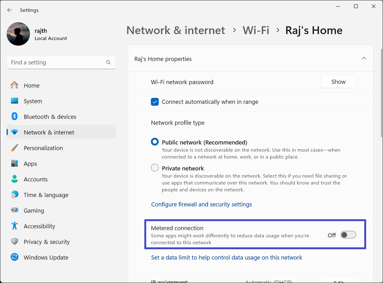 4. Deaktivieren Sie „Als getaktete Verbindung festlegen" oder "Gemessene Verbindung“.