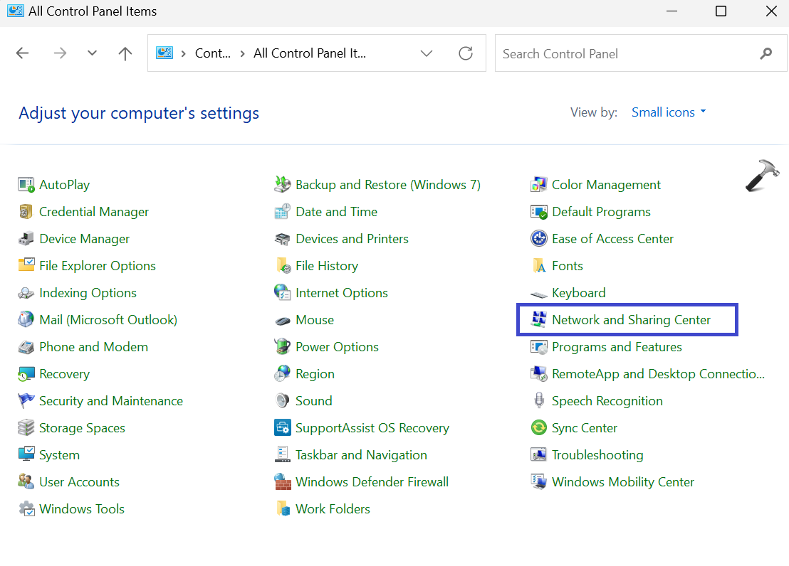 1. Öffnen Sie die Systemsteuerung und klicken Sie auf „Netzwerk- und Freigabecenter”-Option.