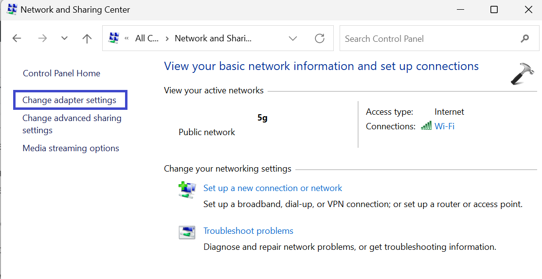 2. Klicken Sie nun auf „Adaptereinstellungen ändern„.