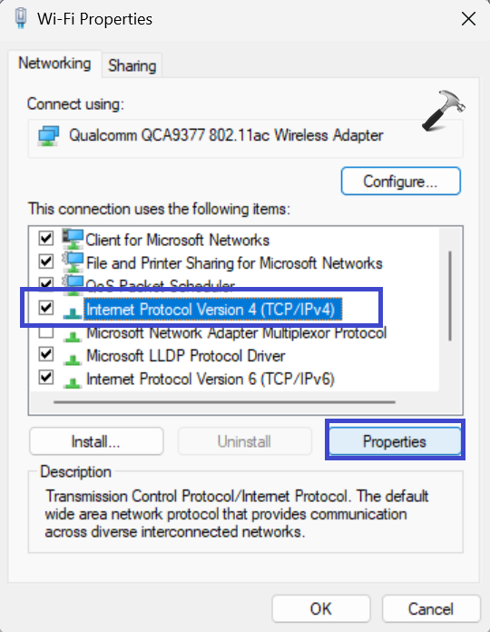 4. Klicken Sie nun auf „Internetprotokoll Version 4 (TCP/IPv4)“ und wählen Sie „Eigenschaften„.