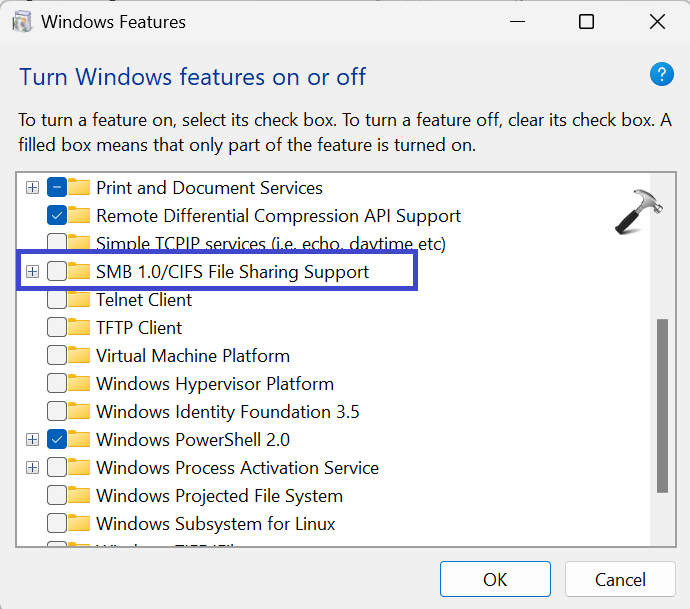 4. Suchen und überprüfen Sie nun das „Unterstützung für SMB 1.0/CIFS-Dateifreigabe”-Option.