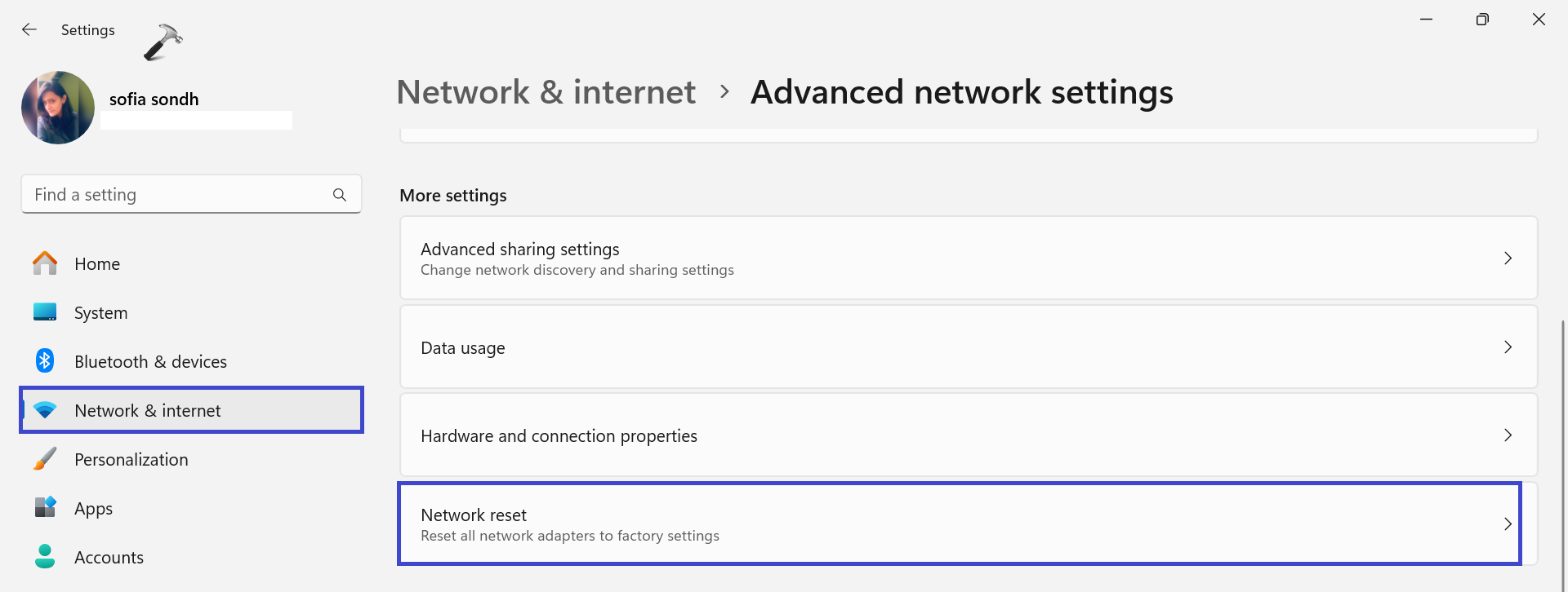 3. Klicken Sie nun auf „Netzwerk-Reset„.