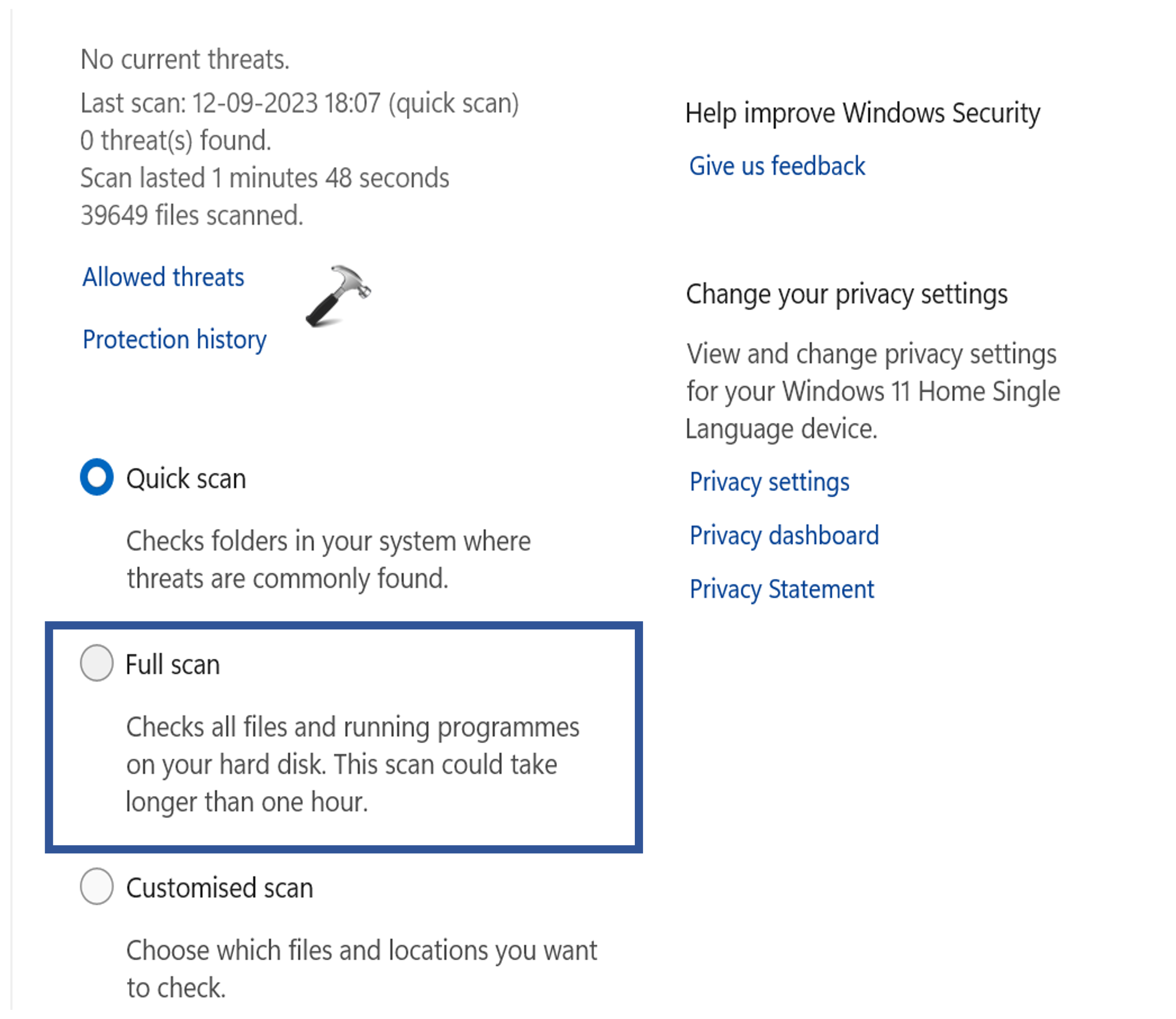 3. Wählen Sie „Vollständiger Scan”-Option.